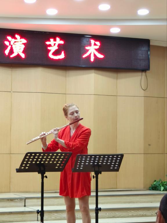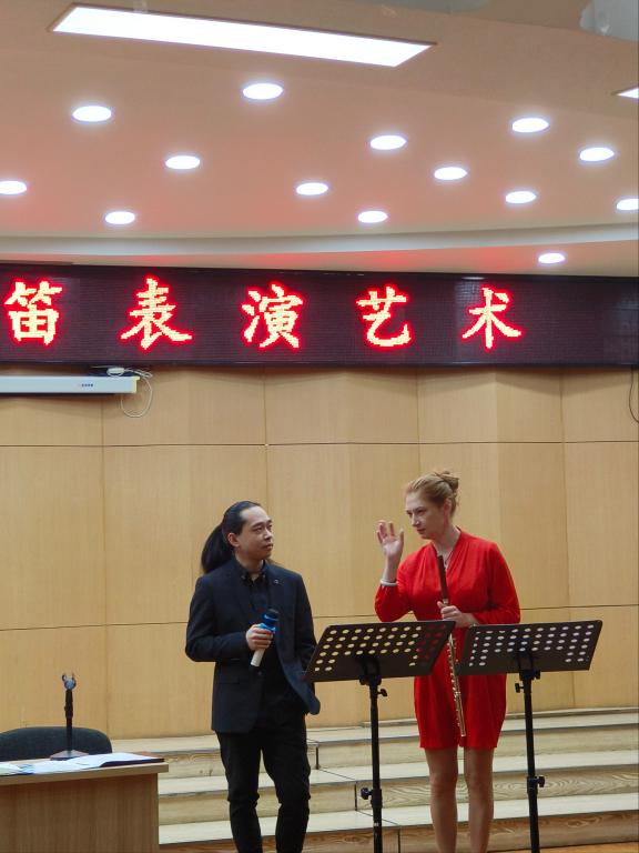 伊丽莎白老师首先介绍了长笛的历史与发展、理想的音色、合理的练习与演奏方法以及现代作品中的特殊技巧,包括弹舌音、泛音等。其次演奏了从巴洛克时期到现代的音乐作品,包括《泰勒曼长笛协奏曲》、《Qianligongchanjuan》、《Tweet》、《Final Demand》等,最后为博彩新闻