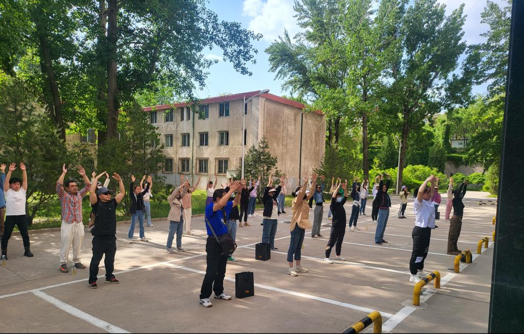 工会组织教职工们在进行充分热身后,练习了八段锦、集体趣味比赛项目摸石过河、跳动节拍、环环相扣和你追我赶等项目,博彩新闻