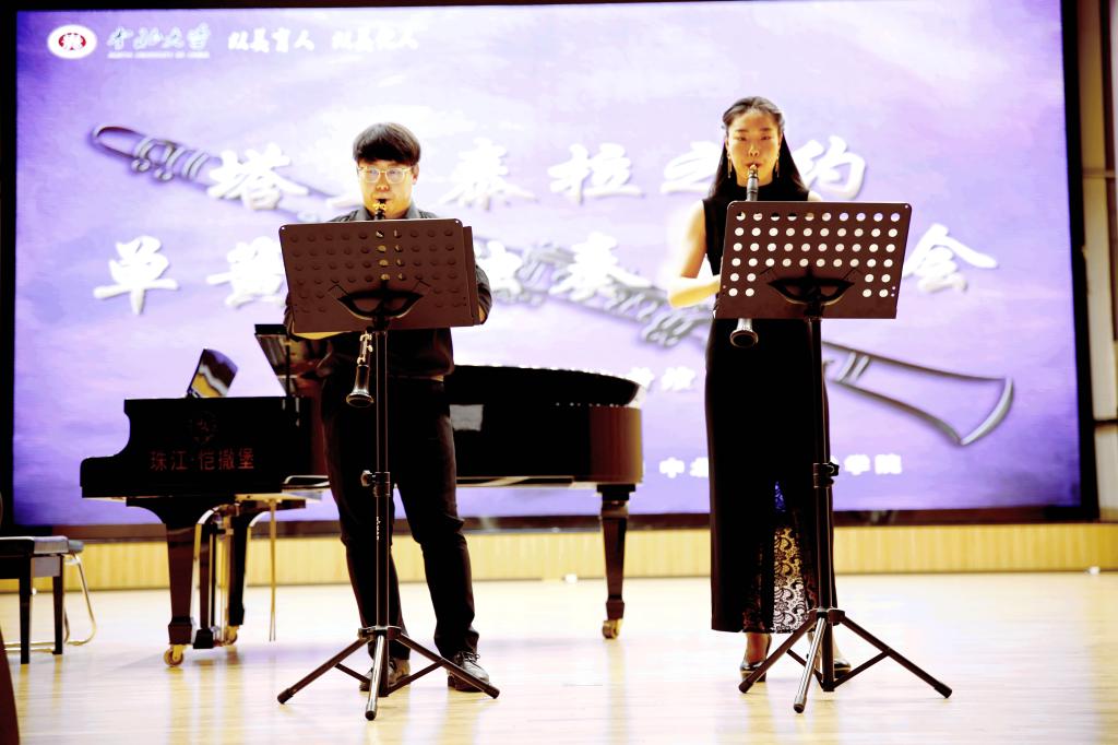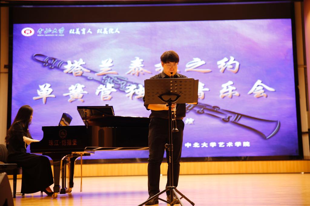 开场曲目《柔板与塔兰泰拉》将观众带到了14世纪中叶的意大利,欣赏到塔兰泰拉这种拥有独特风格的节奏急促多变的舞曲音乐。随后一首《茶花女幻想曲》充分体现了单簧管的歌唱性和无穷的技巧性。单簧管的低沉哀怨的倾诉,表现了玛格丽特凄美短暂的一生。一个绝美又绝情的故事在乐曲的渲染与铺衬下震颤着观众的灵魂。《大巴山的春天》彰显了单簧管音色丰富的表现力,这首具有中国民歌曲风的作品娓娓道来巴蜀风情。除独奏外,本次音乐会向观众展示三首不一样的二重奏。《瑞古塔二重奏》是意大利管乐作曲三杰之一的朱赛利·里柯塔所创作的著名单簧管二重奏小品之一,曲调欢快洒脱带给观众一种独特而摇摆的感觉。《波尔卡二重奏》则将一对轻巧的舞者在音乐中翩翩起舞的场景描绘给观众。《赛密拉米德》则是改编于伏尔泰的悲剧“赛米拉米斯”,之后改编成为了单簧管二重奏。两只单簧管对话的形式将歌剧中的戏剧性完美的展现给了观众。