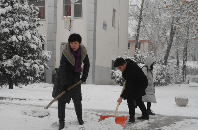 领导班子成员及广大师生党员、积极分子积极响应号召纷纷参与到铲雪除冰活动中来。