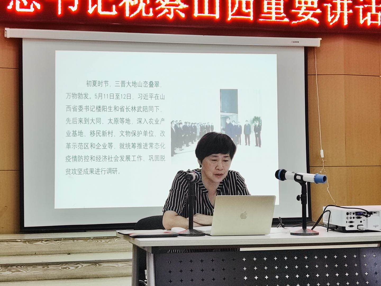 党委安排和部署,于7月4日下午四点在12号楼一层东排练厅召开“学习贯彻习近平总书记视察山西重要讲话精神宣讲会”,院党委书记夏瑞丽、院长王燕平、院党委副书记田维飞、副院长李仁伟以及全体教师参加了学习宣讲会,夏书记做了主题报告。