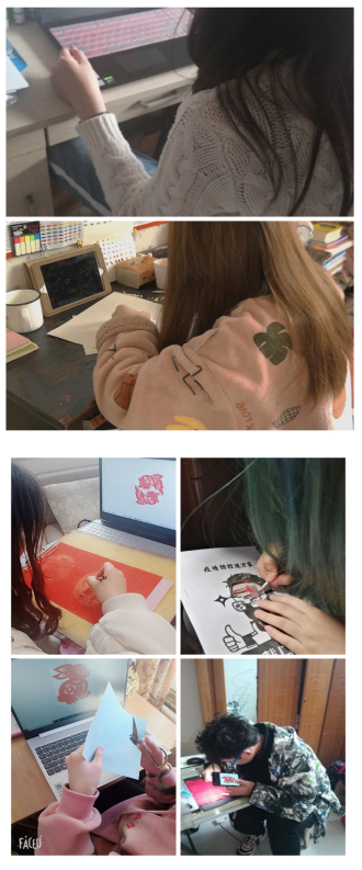 老师也根据现实情况调整教学方案,先直播课程,为同学们讲解课程的疑难之处,后由同学们自学,老师时刻在线为同学们解决问题,并及时发布相关资料以供同学们参考。并让同学们以照片或视频的形式来记录自己的学习,争取让老师能了解到同学们在家的学习情况。此次课程虽不同于一般课程,但同学们受益良多,此次课程之后,同学们定会掌握色彩的调和、混合,色彩的来源、色彩心理和象征意义方面的知识,并将所学知识理论运用到实际的设计之中,对后期教学计划中涉及传统文化创意设计的相关课程内容起到先导作用。