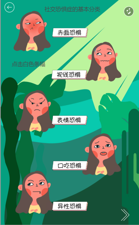 设计说明:通过“人间失格”这本书,就开始想关于社恐这个问题。很多人都不了解社恐,社交恐惧症,又名社交焦虑症,是一种对任何社交或公开场合感到强烈恐惧或忧虑的精神疾病。患者对于在陌生人面前或可能被别人仔细观察的社交或表演场合,有一种显著且持久的恐惧,害怕自己的行为或紧张的表现会引起羞辱或难堪。有些患者对参加聚会、打电话、到商店购物、或询问权威人士都感到困难。在心理学上被诊断为社交焦虑失协症,社恐并不是大家眼中的害羞。希望可以以插画模式把平时日常中社恐会遇到的场景去画出来。再用交互的方式表达出来。让更多人了解,并且理解社恐症。