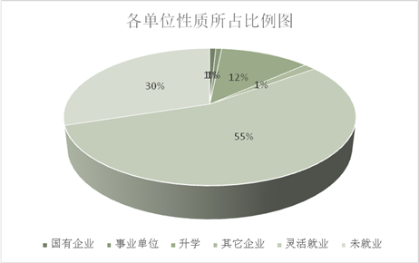 学生就业灵活度较高,虽然签约率(签约率=(签就业协议+劳动合同)/毕业生总数x100%)比往年都有所提升较,但是灵活就业率普遍较高,其中包括自主创业、个体、私企等较多,这也充分体现了艺术类专业的就业途径较宽。