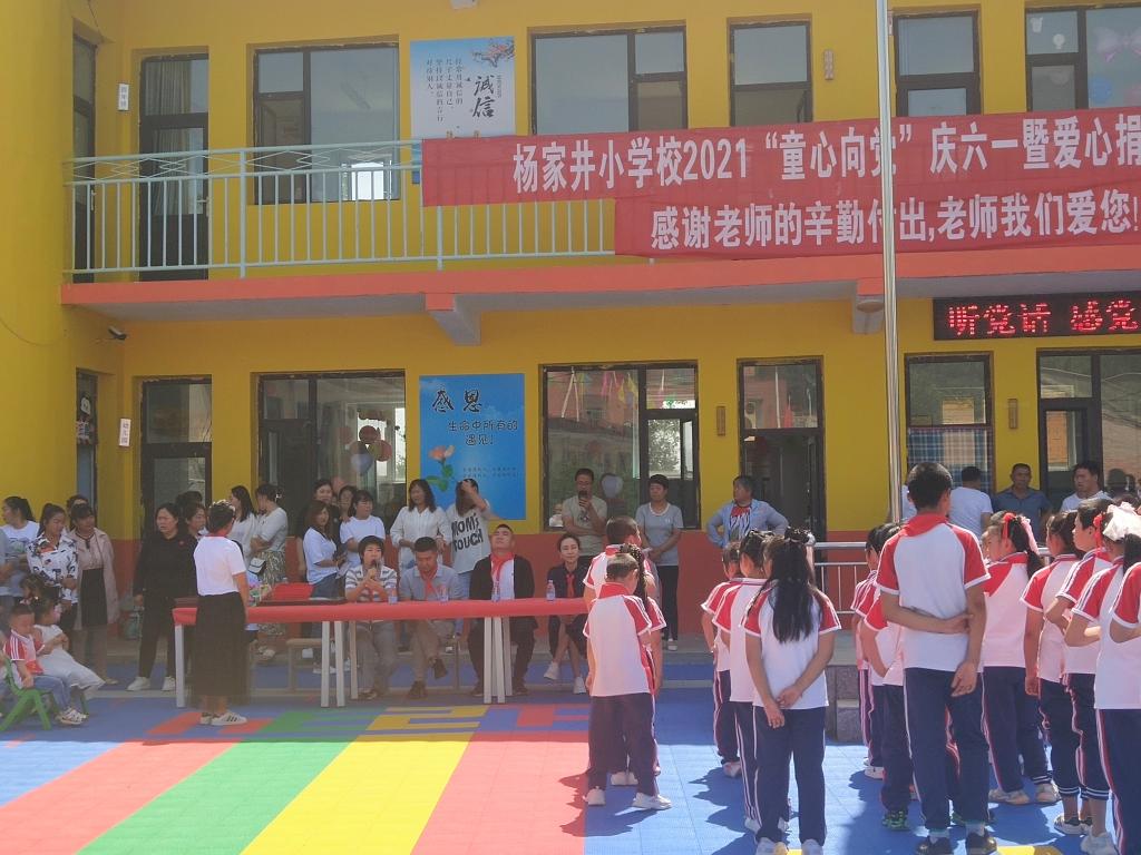 祝同学们六一节快乐,并为同学们带来了教具。杨家井小学的校长为长期支持他们艺术教育的博彩新闻