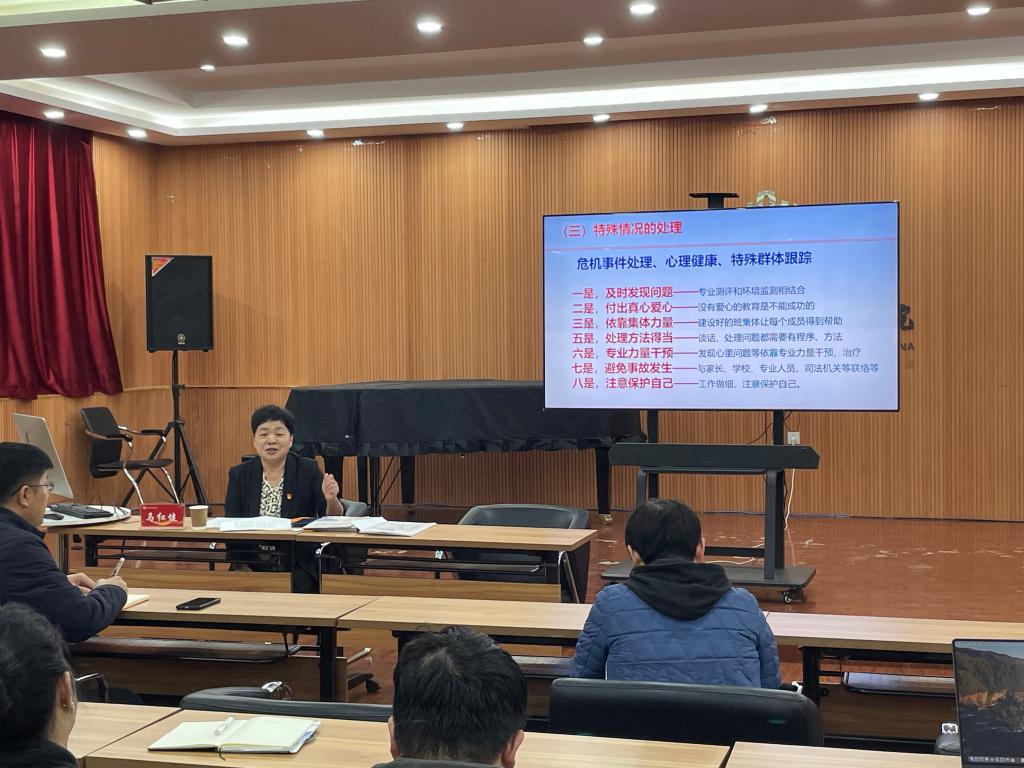 讲座伊始,院党委副书记田维飞简要介绍了马红健老师的工作经历和成就,她是一位在学生工作领域深耕多年,拥有丰富教学和学生管理经验的专家,为各位班主任老师带来精彩纷呈的知识盛宴。