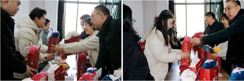 紧接着,院领导们依次送上真挚的祝福语。院党委副书记田维飞满怀热忱地祝大家:坚定信心,坚持到底;科学备考;加油冲刺;调整心态,轻松上阵。副院长李仁伟恳切地送上祝愿:星光不负赶路人,希望每一滴汗水都能换来每一份收获,也希望大家成长为自己想要成为的样子。杨博华副院长引用“无人扶我凌云志,我自踏雪至山巅。”诗句,转而温暖有力地说到:学习从来都是一个人的战斗,它是最难的,因为只有你一个人。也是最简单的,因为只要你一个人成功,这件事就成了。言罢,院领导一同将精心筹备的“考研大礼包” 递到同学们手中,并逐一加油打气。礼包沉甸甸,情谊更厚重。