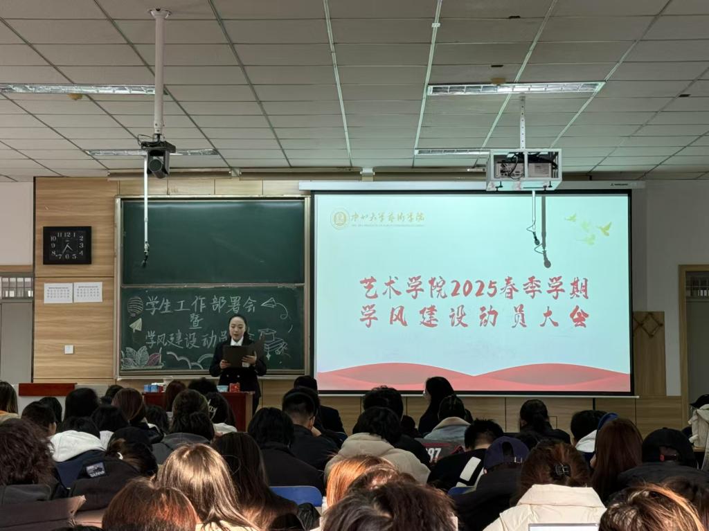 发展和学生成长的关键作用,指出良好的学风是提高教学质量、培养优秀艺术人才的重要保障。她从专业学习、实践能力培养、学术创新等多个方面对学生提出了期望,鼓励同学们树立明确的学习目标,积极参与各类学术活动和实践项目,不断提升自身的专业素养和综合能力。