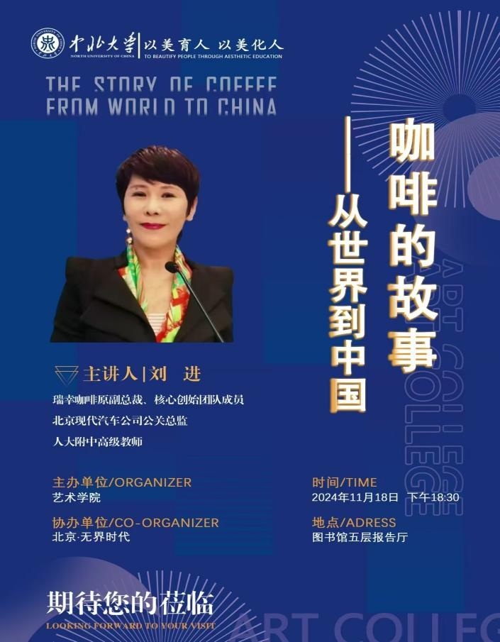 讲座邀请到了瑞幸咖啡原副总裁、核心创始团队成员刘进,刘进女士以其丰富的行业经验和深厚的文化底蕴,为师生及咖啡文化爱好者们带来了一场关于咖啡文化的深度解读。