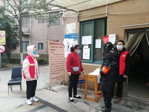 小区大门参加防控值守,对进出人员登记、测量体温