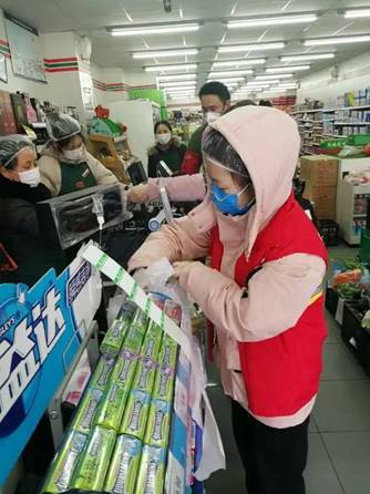 运送物资到小区大门,再进行分发给居民